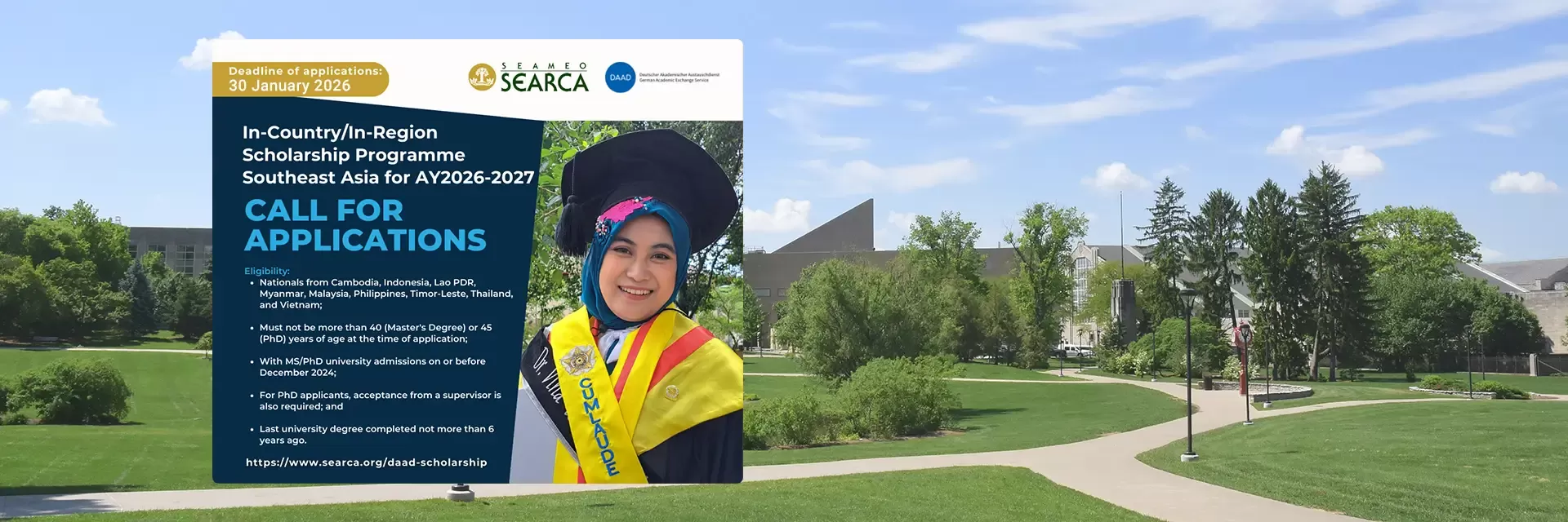 The application deadline has been extended to 30 January 2026, 11:59 p.m. (GMT+8) via the SEARCA portal, and to 16 February 2026 via the DAAD portal.