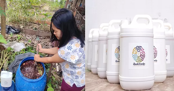 This project implemented a low-cost, science-based solution: creating and using probiotics out of rice washing to ferment mixtures of banana peel, leafy vegetable waste, eggshells, coffee grounds, and fish washing, into an organic nutrient.