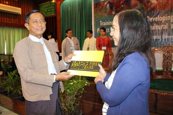 Dr. Gil C. Saguiguit, Jr., SEARCA Director represented by Dr. Maria Celeste H. Cadiz, Program Head for Knowledge Management, said that this training-workshop is part of SEARCA's long-standing commitment to capacity-building in agricultural and rural development (ARD) for the Republic of the Union of Myanmar as a SEAMEO member country. He mentioned Myanmar's citation of SEARCA's "significant contribution and continuous support to sustainable Agriculture Sector Development through Human Resource Development in Myanmar" in its 2015 World Food Day, which according to him is an award that the Center cherishes to this day. Dr. Saguiguit also said that this offering is closely linked to SEARCA's Institutional Development Assistance for the Yezin Agricultural University and that it is part of the offerings of SEARCA's Short Term Training Program under Knowledge Management. The training-workshop has been tailored from what SEARCA has been offering as a regional course according to Myanmar's specific needs, he explained, thanking MoALI and YAU for hosting and co-organizing it.