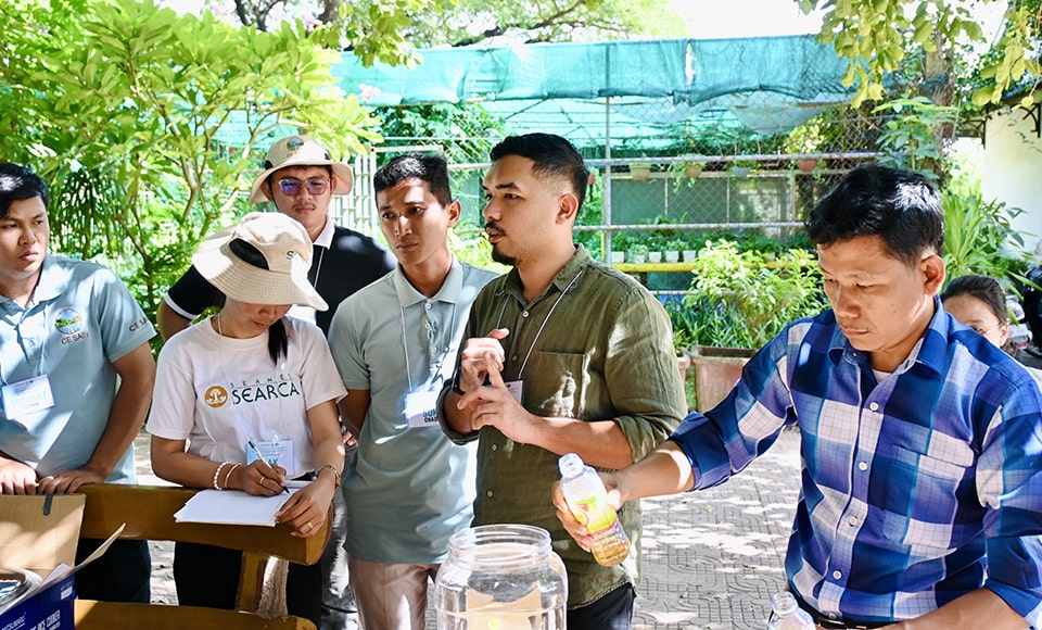 PHNOM PENH, Cambodia – The Southeast Asian Regional Center for Graduate Study and Research in Agriculture (SEARCA) and the Center of Excellence on Sustainable Agricultural Intensification and Nutrition (CE SAIN), in line with the commitment to advance sustainable agricultural practices and improving food and nutritional security in Cambodia, conducted a training program on Sustainable Food Production and Basic Food Processing on 26–28 November 2024 at the CE SAIN Office in the Royal University of Agriculture (RUA). It was attended by 22 participants, comprising agricultural coordinators and agricultural extension officers of the Agricultural Technology Parks (ATPs), teachers, school heads, and principals of the pilot schools.