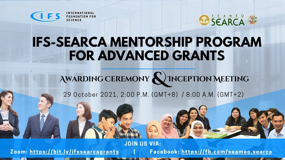 The Awarding Ceremony will be open to the public and will be hosted by SEARCA’s Education and Collective Learning Department-Training for Development Unit (ECLD-T4DU) and co-hosted by the Research and Thought Leadership Department (RTLD) via the SEARCA Online Learning and Virtual Engagements (SOLVE) platform. Participants of the Awarding Ceremony include the IFS-SEARCA team, successful grantees, and the team of mentors.